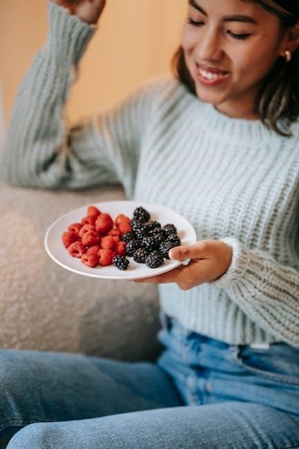 A balanced meal plan for B Positive individuals involves focusing on highly beneficial foods like lean meats, fish, and dairy, while minimizing harmful options. Start by consulting a Blood Type B Positive food list to identify allowed foods. Plan meals around protein sources, such as turkey, chicken, and fish, paired with beneficial vegetables like spinach and sweet potatoes. Incorporate fruits like berries and bananas in moderation; Balance macronutrients by combining proteins, healthy fats, and complex carbs in each meal. Consider meal prepping to ensure consistency and convenience. Hydration is also key, so include water-rich foods and drinks in your plan. Consistency is crucial for achieving optimal health benefits.